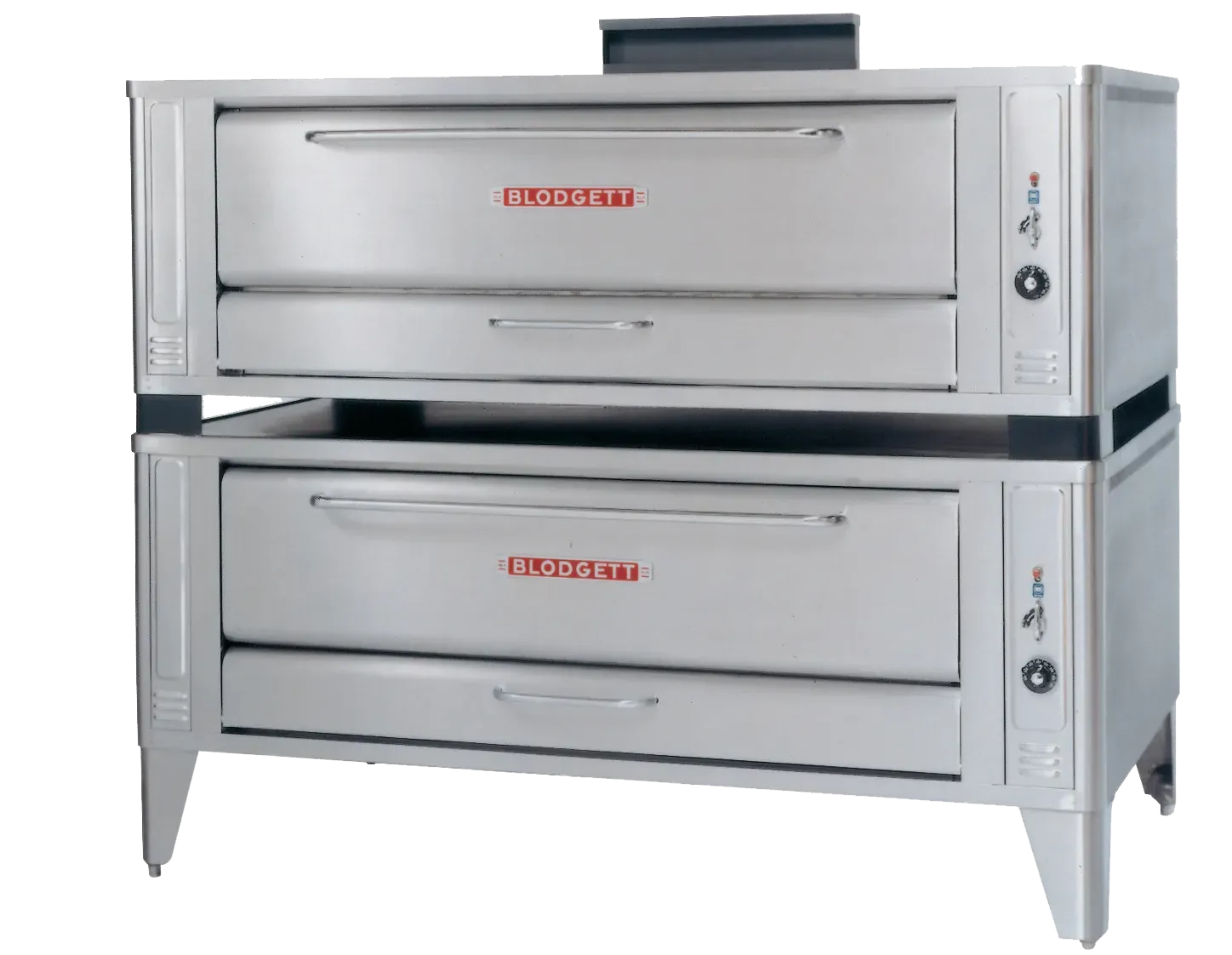 For a heavy-duty, high volume, fast recovery pizza oven, you can trust the Blodgett large pizza deck ovens featuring bottom air intake. We have designed a system to transfer just the right amount of heat to the top ensuring a perfectly cooked pizza time after time. These ovens can be stacked to optimize your production capacity. Our 10” tall door is just the right height, combining functionality and energy savings all in the same foot print. 1048-DBL is a double stack oven with two 10” high baking compartments and includes 12” s/s legs, s/s crown angle leg frame, stainless steel draft diverter or direct vent, flue connector and crown angle trim.