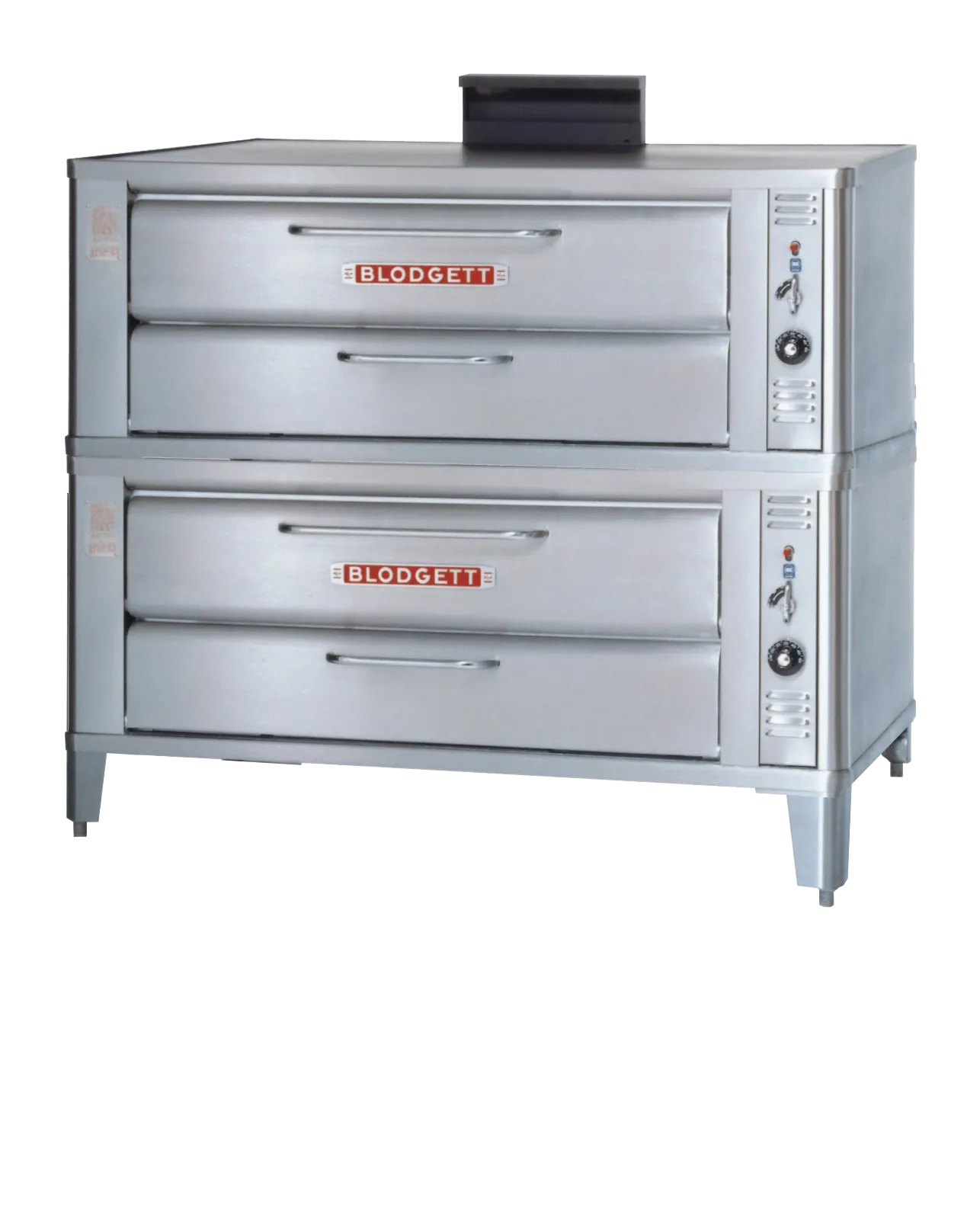 The Blodgett Deck Oven line has set industry wide standards for excellence in baking characteristics, performance and reliability. Simplicity of design and quality construction throughout assure years of trouble-free operation. Blodgett provides the strongest warranty in the business with a standard five-year door warranty! Creating endless possibilities with the Basic Four! The Blodgett large 900 Series gas deck ovens come in four basic sections. Each section has the same 60″ x 40″ footprint and can be stacked in any combination. The possibilities are endless. Separate heat controls for each section permit baking and roasting at different temperatures, simultaneously, in one oven! Blodgett’s Basic Four design gives you the ultimate in versatility, efficiency, and economy. 961-DBL is a double stack oven with two 7” high baking compartments and includes 19” adjustable s/s legs, s/s draft diverter or direct vent, crown angle trim and double gas connector