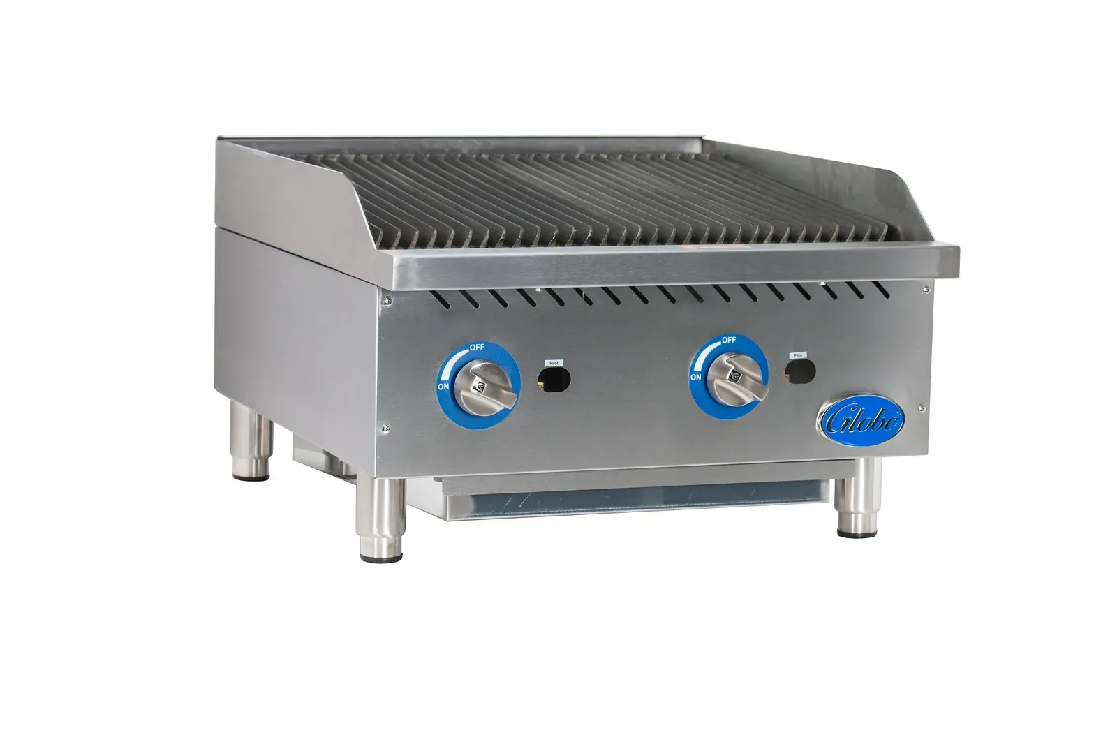 Discover kitchen perfection with the Globe GCB24G-SR Gas Charbroiler. This countertop charbroiler is designed to meet the demands of a commercial restaurant, offering exceptional performance and durability. The heavy-duty reversible cast-iron grates ensure even heat distribution and create beautiful grill marks on your food. With two stainless steel U-style burners and stainless steel radiant covers, this charbroiler delivers consistent and efficient heat for perfect cooking results every time. The adjustable pilots with front access make it easy to control the flame intensity, while the stainless steel front edge and 4" wide grease trough ensure easy cleaning and maintenance. The insulated stainless steel double wall construction keeps the heat inside, while the metal control knobs with set screws provide precise temperature control. With 80,000 BTU of power, this charbroiler is a versatile addition to any commercial kitchen. Whether you're grilling steaks, burgers, or vegetables, the Globe GCB24G-SR Gas Charbroiler is the perfect choice for achieving delicious results.