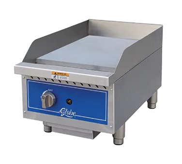 Master your restaurant's kitchen with the Globe GG15G Gas Countertop Griddle. This 15" wide griddle is designed to meet the demands of a busy commercial kitchen. Its 1" highly polished griddle plate is fully welded to a stainless steel frame, ensuring durability and even heat distribution. With manual controls every 12", you have precise control over the cooking temperature. The individual adjustable pilots with front access make ignition quick and easy. The 4" wide grease trough helps to keep your cooking surface clean and the stainless steel double wall construction with extended cool-to-touch front edge ensures safety. The griddle also features 4" adjustable heavy-duty stainless steel legs for stability. With a 30,000 BTU output, this griddle is powerful enough to handle any cooking task. Whether you're cooking breakfast, lunch, or dinner, the Globe GG15G Gas Countertop Griddle is the perfect addition to your commercial kitchen.