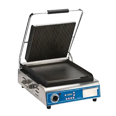 Unleash culinary creativity with the Globe GPGS1410 Sandwich / Panini Grill. This top-of-the-line grill is a must-have for any commercial restaurant looking to elevate their sandwich game. With its seasoned cast iron grooved top and smooth bottom griddle plates, this grill ensures even heat distribution and perfect grill marks every time. The stainless steel construction not only adds durability but also gives it a sleek and professional look. The heavy-duty hinge allows for easy opening and closing, while the adjustable stainless steel non-skid feet ensure stability on any countertop. The catch tray conveniently collects any excess grease or crumbs, making cleanup a breeze. With 1800 watts of power, this grill can handle high-volume cooking with ease. Whether you're making paninis, grilled sandwiches, or even quesadillas, the Globe GPGS1410 Sandwich / Panini Grill is the perfect addition to your restaurant kitchen.