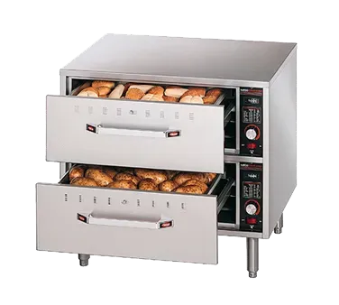Experience kitchen innovation with the Hatco HDW-2 Drawer Warmers. Designed for commercial restaurant use, this warming drawer unit is a game-changer in food storage and presentation. With two spacious drawers, each equipped with a standard 6" deep food pan, you can easily keep your dishes warm and ready to serve. The stainless steel construction ensures durability and easy cleaning, while the thermostatic controls allow you to adjust the temperature to meet your specific needs. The 4" legs provide stability and make it easy to move the unit around your kitchen. NSF and cULus certified, this Hatco Drawer Warmer guarantees safety and quality. Made in the USA, it combines functionality and reliability, making it a must-have for any commercial kitchen. Upgrade your restaurant's food storage capabilities with the Hatco HDW-2 Drawer Warmers.