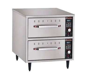Introducing the Hatco HDW-2N Drawer Warmers, designed to simplify restaurant operations and enhance efficiency. This free-standing warming drawer unit is perfect for commercial restaurant use, with its narrow design and two spacious drawers. Each drawer includes a standard 6" deep food pan, allowing you to keep your dishes warm and ready to serve. The stainless steel construction ensures durability and easy cleaning, while the thermostatic controls allow you to adjust the temperature to meet your specific needs. With 4" legs, this unit is stable and can be easily moved around your kitchen. NSF and cULus certified, this Hatco Drawer Warmer guarantees safety and reliability. Made in the USA, it combines quality craftsmanship with practicality. Upgrade your restaurant's food holding capabilities with the Hatco HDW-2N Drawer Warmers.