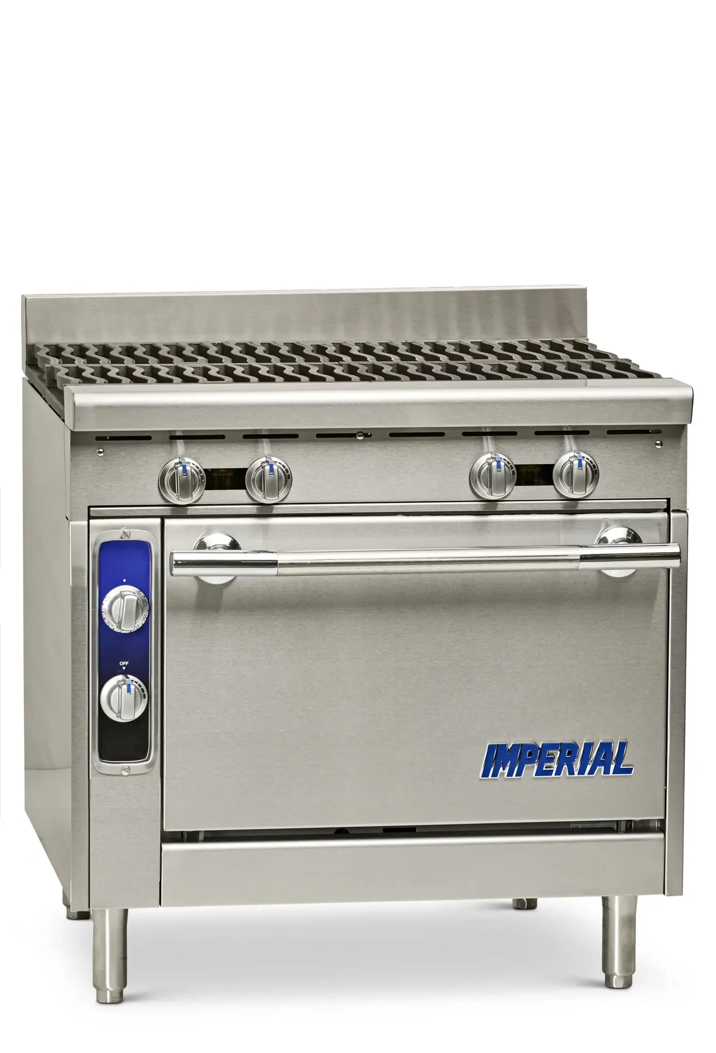 Introducing the Imperial IHR-4 Range, a heavy-duty gas range designed to dominate the culinary world. With its 36" size and four open burners, this range is perfect for commercial restaurant use. The cast iron grates provide even heat distribution, ensuring consistent cooking results. The standard oven comes with a chrome rack, allowing you to bake multiple dishes at once. The manual controls give you precise control over the temperature, while the removable crumb tray makes cleaning a breeze. Made with stainless steel front, sides, landing ledge, backguard, and kick plate, this range is not only durable but also adds a sleek and professional look to your kitchen. The adjustable feet and 6" legs provide stability and flexibility in installation. With a powerful 180,000 BTU, this range is cETLus and NSF certified, guaranteeing its safety and reliability. Upgrade your restaurant kitchen with the Imperial IHR-4 Range and experience the difference in performance and efficiency.