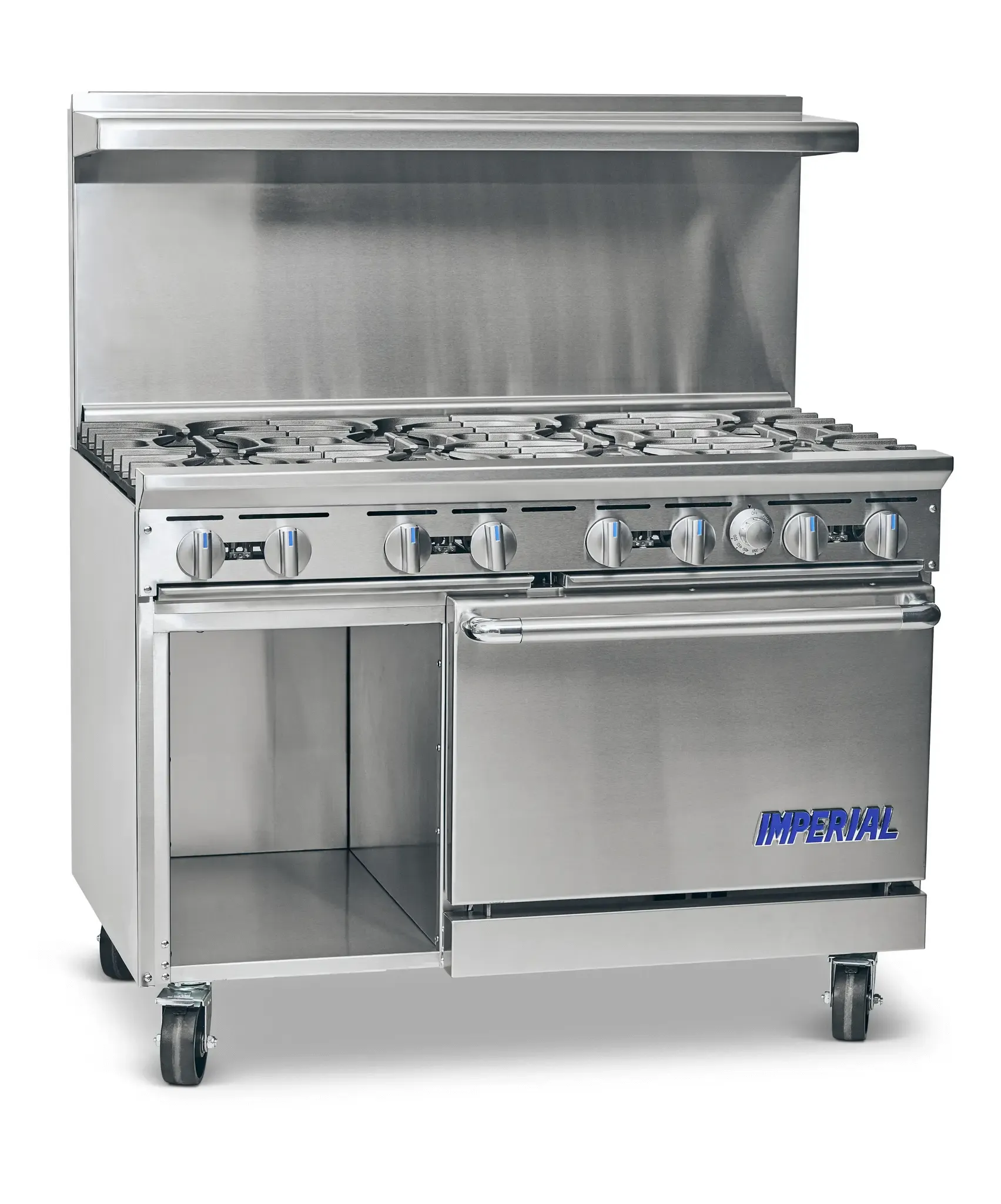 Introducing the Imperial, IR-4-G24-C-XB, Range, 48" Restaurant, Gas. Craft culinary wonders with this top-of-the-line restaurant range. Designed by Imperial, a trusted name in commercial kitchen equipment, this range is a must-have for any professional chef. With four open burners, a 24" griddle, and a convection oven, this range offers versatility and efficiency in one compact unit. The open cabinet and bottom shelf provide ample storage space for pots, pans, and other kitchen essentials. The stainless steel construction ensures durability and easy cleaning, while the adjustable feet allow for easy installation and leveling. With a powerful 1/4 HP motor and a whopping 198,000 BTU, this range can handle even the busiest of kitchens. NSF, CE, CSA Flame, and CSA Star certified, this range meets the highest standards of safety and performance. Upgrade your restaurant kitchen with the Imperial, IR-4-G24-C-XB, Range, 48" Restaurant, Gas.