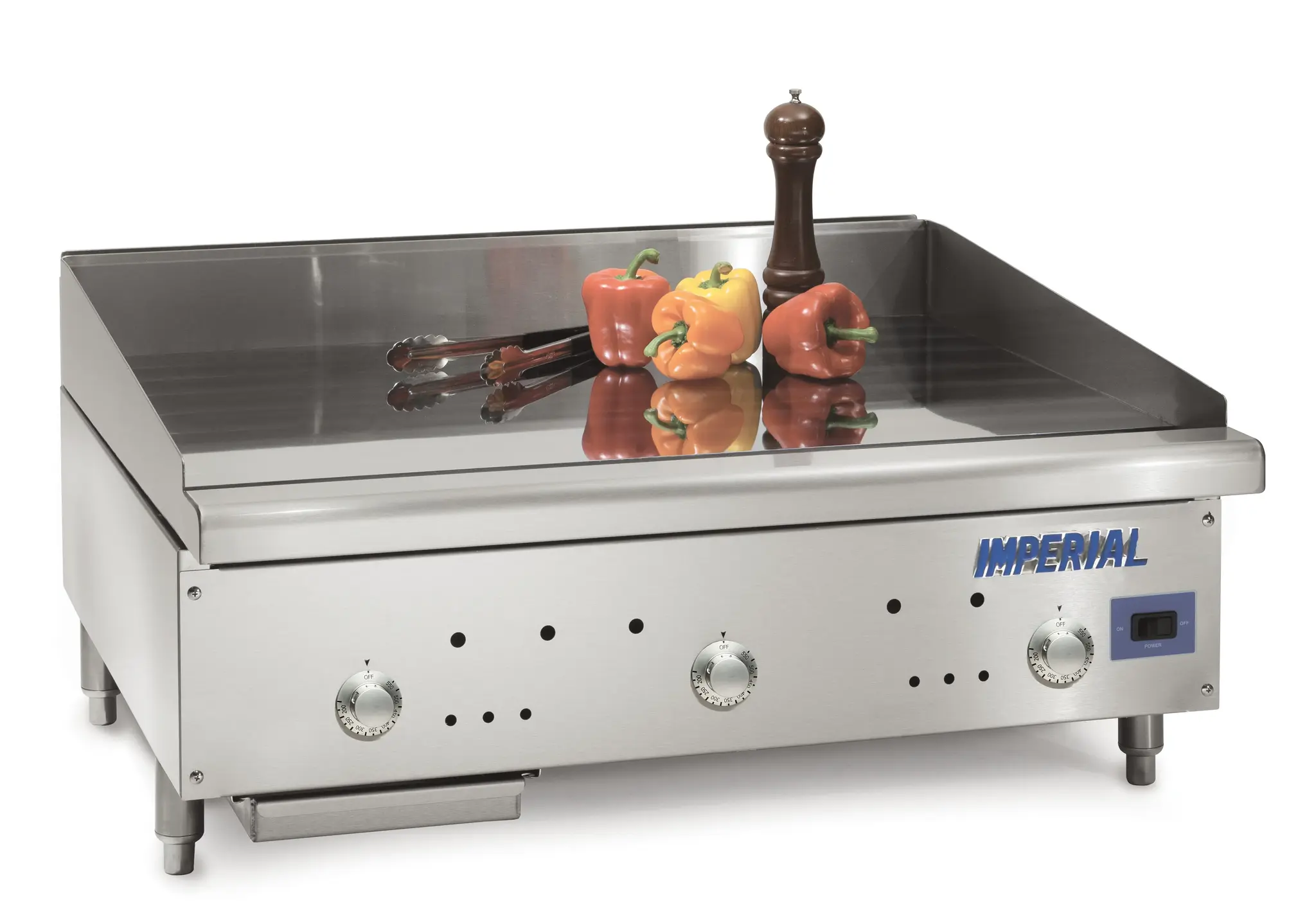 Invest in superior quality with the Imperial ISCE-48 Gas Countertop Griddle. This commercial-grade griddle is designed to meet the demands of a busy restaurant kitchen. With a spacious 48" W x 24" D cooking surface, you'll have plenty of room to cook multiple dishes at once. The 1" thick smooth steel plate ensures even heat distribution for consistent cooking results. The solid state thermostat allows for precise temperature control, while the 4" wide grease gutter and removable grease can make cleaning up a breeze. Made with stainless steel front, sides, ledge, and splash guards, this griddle is not only durable but also easy to clean. The 4" legs provide stability and the 120v/60/1-ph, 2.0 amp power supply ensures efficient operation. With a powerful 96000 BTU output, this griddle is ready to handle any cooking task. Trust Imperial for all your commercial kitchen needs.
