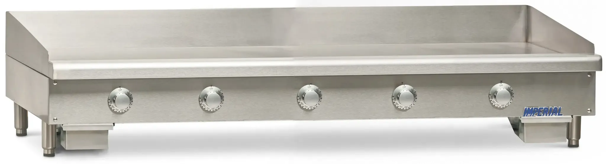 Invest in superior quality with the Imperial ITG-60-E Electric Countertop Griddle. This 60" wide griddle is designed to meet the demands of a busy commercial restaurant kitchen. The 24" deep cooking surface provides ample space for cooking a variety of dishes, while the 1/2" thick polished steel plate ensures even heat distribution and excellent heat retention. The thermostatic controls allow for precise temperature adjustments, ensuring consistent cooking results every time. The 4" wide grease trough and removable grease can make cleaning a breeze, while the stainless steel front, sides, splash guard, and ledge add durability and a sleek look to your kitchen. With its cETLus, ETL-Sanitation, and CE certifications, you can trust that this griddle meets the highest safety and sanitation standards. Upgrade your restaurant kitchen with the Imperial ITG-60-E Electric Countertop Griddle and experience superior performance and reliability.