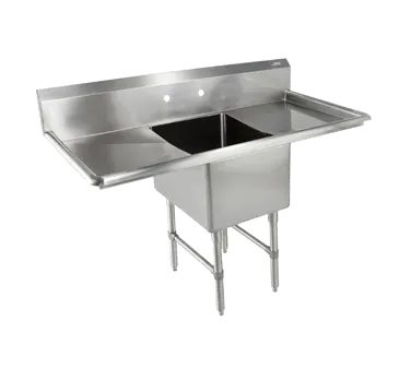 Maximize convenience using efficient tools with the John Boos, 1B244-2D24 Sink. Designed specifically for commercial restaurant use, this sink offers exceptional functionality and durability. The sink features a 1-compartment design with a 24" x 24" front-to-back x 14" deep compartment, allowing for easy washing and rinsing of dishes, utensils, and cookware. The 24" left and right drainboards provide additional workspace for food preparation and drying. Constructed from 16-gauge stainless steel, this sink is built to withstand the demands of a busy kitchen. The adjustable side bracing and stainless steel legs ensure stability and support. With a 10" high boxed backsplash and splash mount faucet holes, this sink helps maintain a clean and organized workspace. NSF and CSA-Sanitation certified, this John Boos sink is a reliable and essential addition to any commercial restaurant.