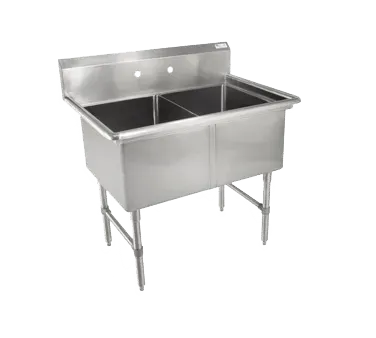 Upgrade workflow with innovative resources through the John Boos, 2B16204, Sink, (2) Two Compartment. This stainless steel sink is designed to enhance efficiency and functionality in commercial restaurant settings. With its two 16W x 20 front-to-back x 14 deep compartments, it provides ample space for washing and rinsing dishes, utensils, and cookware. The 10H boxed backsplash with a 45 top and 2 return ensures a clean and hygienic work area, while the splash mount faucet holes with 8 centers offer convenient access to water. The die-stamped drain openings and adjustable bullet feet further enhance usability and ease of maintenance. Made from durable 16300 stainless steel, this sink is built to withstand the demands of a busy kitchen. Its adjustable side bracing and stainless steel legs provide stability and support. NSF and CSA-Sanitation certified, this John Boos sink is a reliable and essential addition to any commercial restaurant.