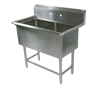 Enhance operations with clever choices using the John Boos, 42PB18244, Sink, (2) Two Compartment. This commercial-grade sink is designed to meet the demands of a busy restaurant kitchen. Made of durable 14300 stainless steel, it can withstand heavy use and is easy to clean. The sink features two 18W x 24 front-to-back x 14 deep compartments, perfect for washing and rinsing dishes. The 10H boxed backsplash with a 45 top and 2 return helps prevent water from splashing onto the surrounding area. With one set of splash mount faucet holes with 8 centers, you can easily install the faucet of your choice. The sink also has three 1-1/2" die-stamped drain openings for efficient water drainage. It comes with stainless steel legs, adjustable front and side bracing, and adjustable bullet feet for stability. NSF and CSA-Sanitation certified, this sink is a reliable choice for any commercial restaurant.