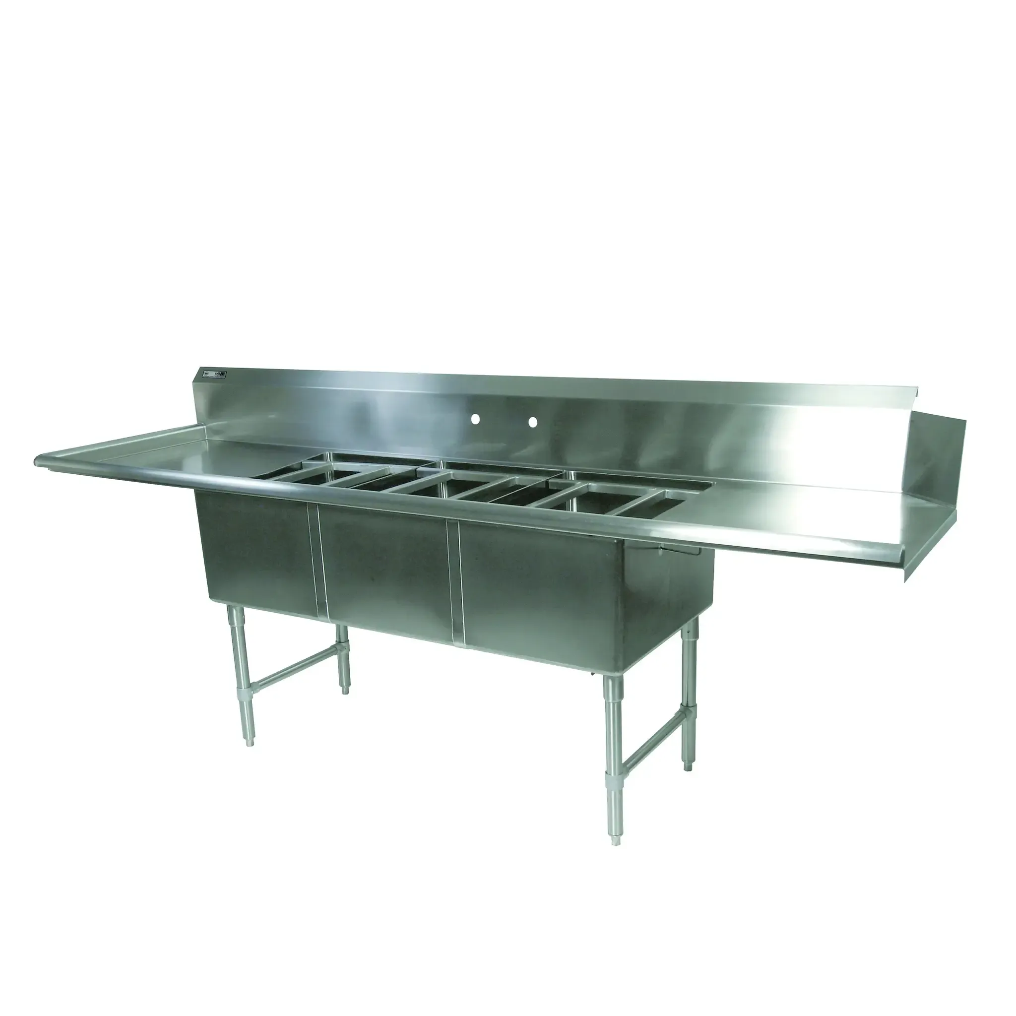 Upgrade your restaurant service with the John Boos DT3PB18244-2D24L Dishtable with Potsinks. This versatile and durable dishtable is designed to meet the demands of a busy commercial restaurant. With its clean and straight design, it offers a spacious overall size of 103-58W x 30-38D x 44-116H, providing ample workspace for your staff. The dishtable features three 18W x 24 front-to-back x 14 deep compartments and two 24 drainboards, allowing for efficient dishwashing and food preparation. The dish machine attachment on the right side further enhances productivity. Made of high-quality 16300 stainless steel, this dishtable is built to last. It also comes with stainless steel legs, bracing, and adjustable bullet feet for stability. NSF and CSA-Sanitation certified, this dishtable ensures the highest standards of cleanliness and hygiene. Upgrade your restaurant's efficiency and cleanliness with the John Boos DT3PB18244-2D24L Dishtable with Potsinks.