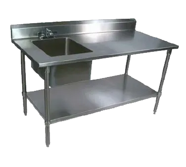 Elevate service with intelligent choices using the John Boos EPT6R5-3072GSK-L Work Table with Prep Sink. This versatile and durable work table is designed to meet the demands of a commercial restaurant setting. With its 72-inch width, 30-inch depth, and 40-3/4-inch height, it provides ample space for food preparation and storage. The table features a 16-inch by 20-inch by 12-inch deep sink bowl on the left, allowing for convenient washing and rinsing of ingredients and utensils. The 5-inch high backsplash helps to keep the surrounding area clean and hygienic. The table also includes a 10-inch swing spout faucet with a 4-inch on-center design for easy access to water. Made with 16-gauge stainless steel top, galvanized legs, and an adjustable undershelf, this work table is built to withstand the rigors of a busy kitchen. It is NSF and CSA-Sanitation certified, ensuring its quality and safety. Upgrade your restaurant's efficiency and functionality with the John Boos EPT6R5-3072GSK-L Work Table with Prep Sink.