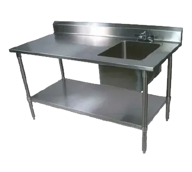 Revitalize service with versatile options through the John Boos EPT6R5-3072GSK-R Work Table with Prep Sink. This commercial-grade work table is designed to enhance efficiency and functionality in any restaurant setting. With its spacious 72W x 30D x 40-34H overall size, it provides ample workspace for food preparation and other tasks. The table features a 16W x 20 front-to-back x 12 deep sink bowl on the right, allowing for convenient washing and rinsing. The 5H backsplash helps maintain cleanliness and prevents spills from reaching the floor. The table also includes a 10 swing spout faucet with 4 O.C. for easy access to water. Made with durable 16300 stainless steel top, galvanized legs, and an adjustable undershelf, this work table is built to withstand the demands of a busy restaurant kitchen. It is NSF and CSA-Sanitation certified, ensuring its quality and safety. Upgrade your restaurant's efficiency and hygiene with the John Boos EPT6R5-3072GSK-R Work Table with Prep Sink.