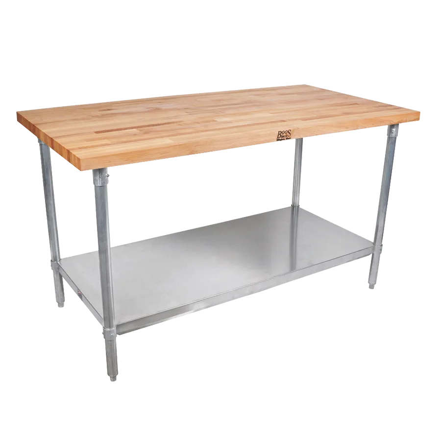 Optimize efficiency with clever solutions through the John Boos JNS21 Work Table. Designed specifically for commercial restaurant use, this work table is a game-changer in the kitchen. With its generous dimensions of 120W x 36D x 35H, it provides ample space for food preparation, making it ideal for busy restaurant environments. The 1-1/2 inch thick edge grain flat top is made from antimicrobial Northern Hard Rock Maple, ensuring a hygienic surface for food handling. The penetrating oil finish not only enhances the table's natural beauty but also protects it from daily wear and tear. The galvanized legs and adjustable undershelf provide stability and additional storage options. Equipped with bullet feet, this work table can be easily leveled on any surface. Upgrade your kitchen with the John Boos JNS21 Work Table and experience enhanced productivity like never before.