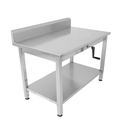 Maximize convenience using efficient tools with the John Boos LT6R5-3060SSW Work Table. Designed for commercial restaurant use, this work table offers a durable and versatile solution for your kitchen needs. The table features a 16300 series stainless steel top, providing a hygienic and easy-to-clean surface that is perfect for food preparation. With an adjustable height range of 32-40.8 inches, this table ensures ergonomic comfort for your staff. The hydraulic lift system, operated by a foldable hand crank, allows for easy adjustment to accommodate different tasks and users. The 5-inch high backsplash helps contain spills and splatters, keeping your workspace clean and organized. The 18-gauge fixed stainless steel undershelf provides additional storage space for utensils, ingredients, and equipment. With stainless steel legs and adjustable floor glides, this work table offers stability and mobility. Upgrade your restaurant kitchen with the John Boos LT6R5-3060SSW Work Table and experience enhanced efficiency and functionality.