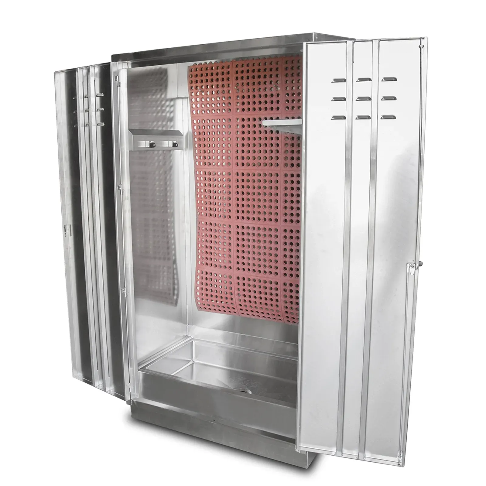 Maximize convenience using efficient tools with the John Boos PBMC-224884 Mop Sink Cabinet. This fully enclosed cabinet is designed to meet the needs of commercial restaurants, offering a range of features that make it an essential addition to any kitchen. The cabinet includes two lockable louvered swinging doors, ensuring the security of your supplies and equipment. It also features a 20 x 38 x 6 deep sink with a drain, allowing for easy cleaning and maintenance. The overhead shelf provides additional storage space, while the rear mounted mat holder and side mounted mop holder with 2 locking cams keep your cleaning tools organized and easily accessible. The service faucet and 120 hose make it convenient to fill and empty the sink. Made from 18 gauge, 300 series stainless steel, this mop sink cabinet is durable and built to withstand the demands of a busy restaurant environment. Upgrade your kitchen with the John Boos PBMC-224884 Mop Sink Cabinet and experience enhanced efficiency and organization.