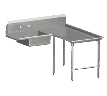 Optimize operations with versatile solutions using the John Boos, SDT6-I60144SBK-R Dishtable, Soiled "L" Shaped. This commercial-grade dishtable is designed to streamline your restaurant's workflow and enhance efficiency. With its island design and right-to-left operation, it offers a convenient layout for dishwashing tasks. The dishtable features a spacious 20W x 20 front-to-back x 8 deep pre-rinse sink bowl, allowing for thorough cleaning of dishes and utensils. The 10H boxed backsplash with a 45 & 2 return ensures a clean and hygienic workspace, while the splash mount faucet holes with 8 centers provide easy access to water. Made of durable 16-gauge stainless steel, this dishtable is built to withstand the demands of a busy commercial kitchen. The stainless steel legs, bracing, and adjustable bullet feet provide stability and support. NSF certified, this dishtable meets the highest standards of sanitation and safety. Upgrade your restaurant's dishwashing area with the John Boos, SDT6-I60144SBK-R Dishtable, Soiled "L" Shaped.