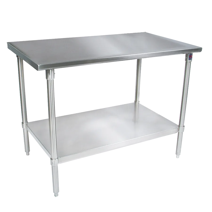 Upgrade workflow with adaptable resources through the John Boos ST6-3030GSK Work Table. Designed specifically for commercial restaurant use, this work table is a versatile addition to any kitchen. The 30" x 30" stainless steel flat top provides a durable and easy-to-clean surface, perfect for food preparation or plating dishes. The Stallion Safety Edge front and back ensure safety and prevent accidents, while the 90 turndown on the sides helps contain spills and messes. With galvanized legs and an adjustable undershelf, this work table offers ample storage space for utensils, ingredients, and equipment. The adjustable bullet feet allow for easy leveling on uneven surfaces. NSF and CSA-Sanitation certified, this work table meets the highest standards of cleanliness and hygiene. Upgrade your restaurant's efficiency and functionality with the John Boos ST6-3030GSK Work Table.