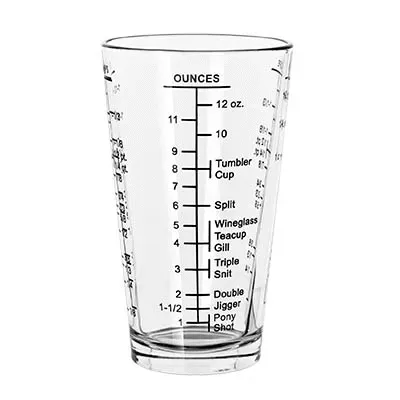 Maximize meal aesthetics with Libbey Glass, the trusted name in commercial restaurant supplies. Introducing the Libbey Glass, 1639/1918M, Glass Mixing Set. This set includes 8 durable glass mixing glasses, each with a 16 oz. (473 ml) capacity and convenient capacity markings on both sides. Designed to fit standard metal shakers and strainers, these glasses are perfect for creating delicious cocktails and mixed drinks. The DuraTuff construction ensures long-lasting durability, making them ideal for the fast-paced environment of a commercial restaurant. With a height of 5-7/8", a top diameter of 3-1/2", a bottom diameter of 2-3/8", and a depth of 3-1/2", these glasses are the perfect size for professional bartenders. Elevate your drink presentation and impress your customers with the Libbey Glass, 1639/1918M, Glass Mixing Set. Order yours today and experience the difference in quality and style.