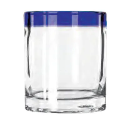 Equip for memorable dining experiences with the Libbey Glass, 92313, Glass, Old Fashioned / Rocks. This hand-blown, 10 oz. rocks glass is designed to elevate your restaurant's drink service. With its cobalt blue rim and anneal treated glass, this Libbey Glass exudes elegance and durability. The Aruba design adds a touch of sophistication to any table setting, making it perfect for upscale establishments. Not only is this glass dishwasher and microwave safe, but its sturdy construction ensures long-lasting use in a busy restaurant environment. Elevate your drink presentation and impress your guests with this stunning rocks glass.