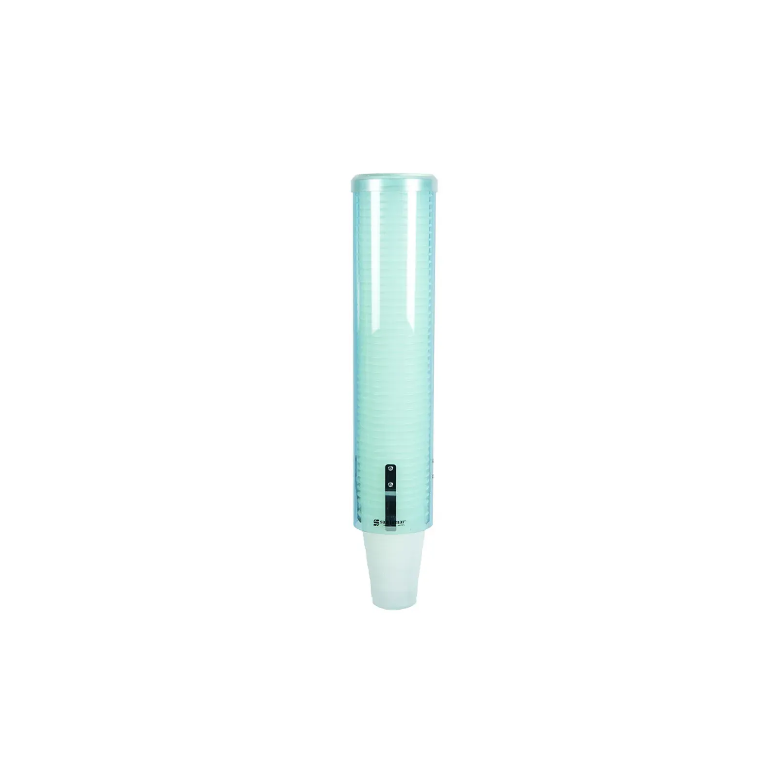 Elevate standards with the San Jamar C3260TBL Cup Dispenser. This top-loading, self-adjusting dispenser is designed to meet the needs of commercial restaurants. With a 16-inch long tube, it can accommodate 4-1/2 to 7 oz. cone cups or 6 to 12 oz. flat bottom cups with a rim diameter of 2-3/4" to 3-3/8". Made from impact-resistant plastic in a stylish arctic blue color, this dispenser is not only durable but also adds a touch of elegance to any establishment. The dispenser is wall-mounted, saving valuable counter space and ensuring easy access for customers. Trust San Jamar, a reputable vendor in the industry, to provide you with a reliable and efficient cup dispenser for your commercial restaurant needs.