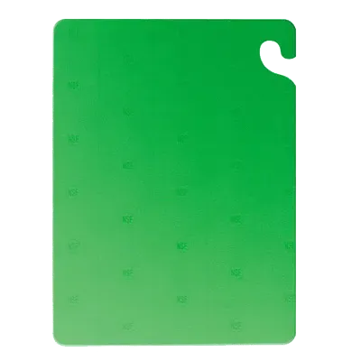 Elevate standards with the San Jamar CB121812GN Cutting Board. Designed specifically for commercial restaurant use, this co-polymer cutting board is a must-have for any professional kitchen. With its generous size of 12" x 18" x 1/2", it provides ample space for slicing, dicing, and chopping ingredients. The vibrant green color not only adds a pop of freshness to your kitchen but also helps prevent cross-contamination by designating it for use with fruits and vegetables. The food safety hook allows for easy storage and accessibility, ensuring a clean and organized workspace. Made from durable materials, this cutting board is dishwasher safe, making cleanup a breeze. NSF certified, it meets the highest standards of food safety and sanitation. Elevate your culinary experience with the San Jamar CB121812GN Cutting Board and enjoy the benefits of a professional-grade tool in your restaurant kitchen.