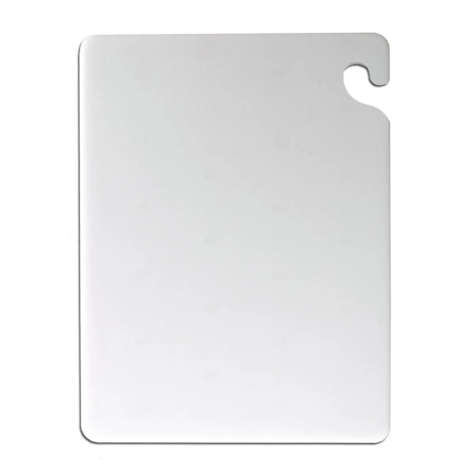 Introducing the San Jamar CB242434WH Cutting Board, a must-have for any commercial restaurant. This durable cutting board is designed to withstand the demands of a busy kitchen, ensuring longevity and reliability. With its 24" x 24" x 3/4" size, it provides ample space for all your chopping and slicing needs. The food safety hook adds convenience and promotes hygiene, allowing you to easily hang the board for drying or storage. Made from co-polymer, this cutting board is dishwasher safe, making cleanup a breeze. Its white color not only complements any kitchen decor but also helps prevent cross-contamination by clearly distinguishing between different food types. NSF certified, you can trust that this cutting board meets the highest standards of safety and sanitation. Upgrade your restaurant's kitchen with the San Jamar CB242434WH Cutting Board and experience the difference in quality and performance.