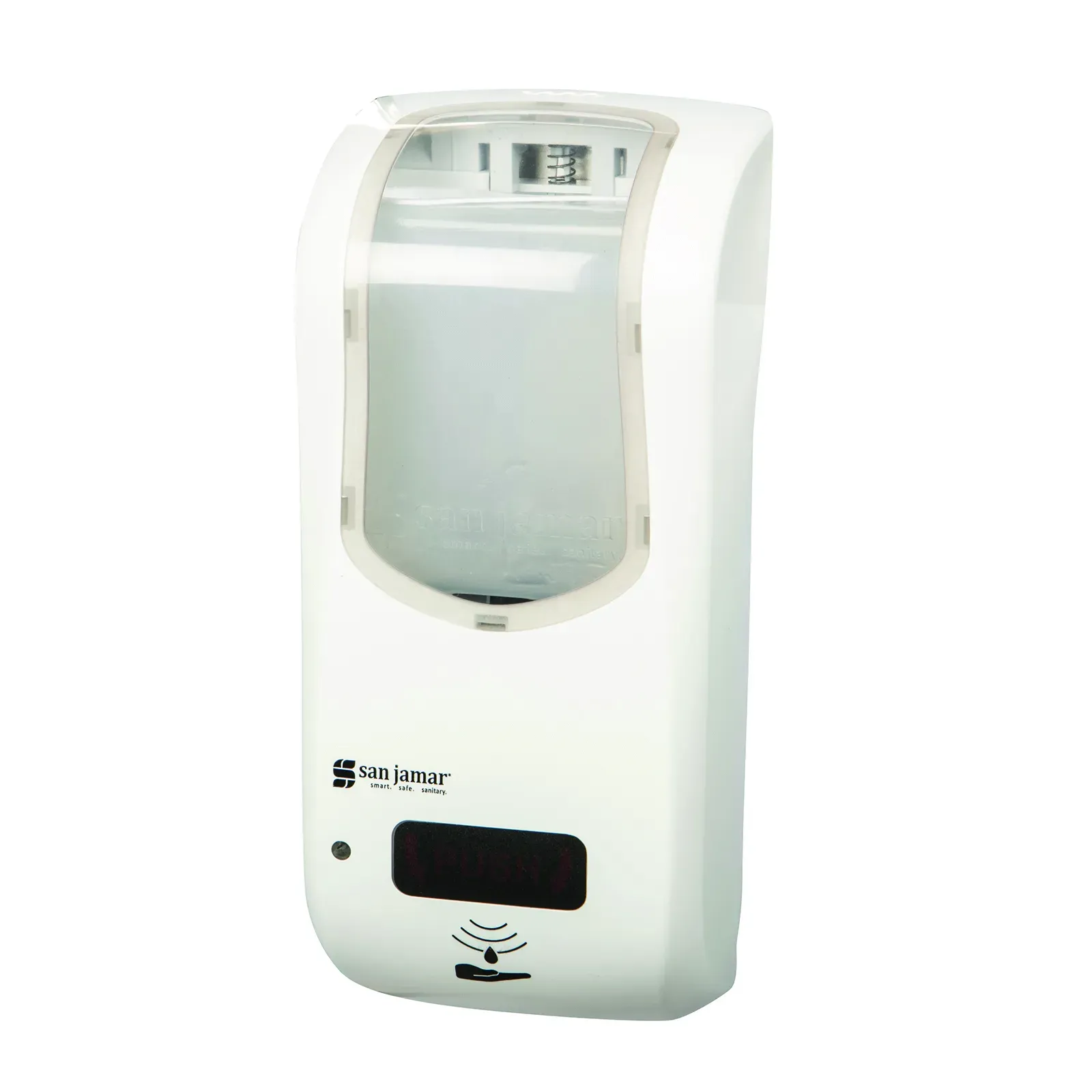 Introducing the San Jamar SH970WHCL Hand Soap / Sanitizer Dispenser, the perfect addition to any commercial restaurant setting. Ensure durability with this Summit Rely Hybrid Soap Dispenser, designed by San Jamar. With a sleek white and clear design, this dispenser not only looks great but also offers a 900 mL capacity, making it ideal for high-traffic areas. It dispenses bulk liquid or lotion as well as hand sanitizer, providing versatility for your restaurant's needs. The electronic touchless feature ensures a hygienic experience for both staff and customers, while the battery-operated system allows for easy installation and operation. Plus, when the batteries are low, the dispenser can be manually operated. Trust San Jamar for quality and reliability in your restaurant's hand hygiene needs.