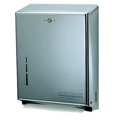 Introducing the San Jamar T1900SS Paper Towel Dispenser, the perfect addition to any commercial restaurant setting. This classic wall-mounted dispenser is designed to foster creativity and efficiency in your kitchen. With its combination multi-fold/C-fold towel capacity, it ensures that your staff always has easy access to paper towels for quick cleanups and hand drying. Made from durable 20 gauge steel and featuring a standard key lock, this dispenser guarantees security and longevity. The satin stainless finish adds a touch of elegance to your restaurant decor. Whether you're running a bustling restaurant or a cozy cafe, the San Jamar T1900SS Paper Towel Dispenser is the reliable and stylish choice for your establishment.