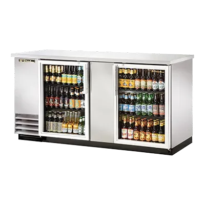 Introducing the True Manufacturing TBB-3G-S-HC-LD Back Bar Cabinet, Refrigerated - the perfect addition to drive restaurant profitability. This two-section back bar cooler is designed to meet the demands of a busy commercial restaurant. With a capacity to hold 112 six-packs or 3 half kegs, this unit ensures you never run out of cold beverages for your customers. The condensing unit on the left side allows for easy access and maintenance. The stainless steel top provides a durable and easy-to-clean surface, while the galvanized interior with a stainless steel floor ensures long-lasting performance. The two glass doors with locks not only showcase your beverage selection but also keep them secure. The LED interior light illuminates the contents, making it easy for your staff to find what they need. Made in the USA and ENERGY STAR certified, this back bar cabinet is not only reliable but also energy-efficient. Upgrade your restaurant with the True Manufacturing TBB-3G-S-HC-LD Back Bar Cabinet and watch your profits soar.