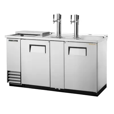 Culinary artistry redefined with True Manufacturing's TDD-3CT-S-HC Draft Beer Cooler. This top-of-the-line cooler is designed to meet the needs of commercial restaurants, offering a spacious capacity for (3) 1/2 kegs. The stainless steel counter top and lid provide a sleek and durable surface, while the (2) solid hinged doors with locks ensure the security of your valuable inventory. Inside, you'll find a PVC coated adjustable wire shelf and an LED interior light for easy organization and visibility. The cooler also features (2) 3" dia. insulated beer columns with a single faucet draft arm, allowing you to serve your customers with ease. With a stainless steel exterior and a galvanized interior with a stainless steel floor, this cooler is built to withstand the demands of a busy restaurant environment. Plus, it uses R290 Hydrocarbon refrigerant and has a 1/4 HP compressor for efficient and reliable cooling. Trust True Manufacturing's TDD-3CT-S-HC Draft Beer Cooler to elevate your restaurant's beverage service. Made in the USA and backed by True Manufacturing's reputation for quality, this cooler is a must-have for any commercial restaurant.