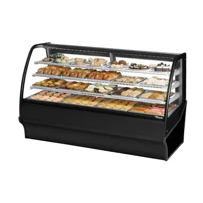 Introducing the True Manufacturing TDM-DC-77-GE/GE-S-S Display Case, Non-Refrigerated Bakery, designed to simplify restaurant operations. This display merchandiser is a must-have for any commercial restaurant looking to showcase their baked goods in an attractive and efficient manner. The two rear sliding glass doors provide easy access for staff while maintaining the freshness of your products. The three tiered levels of adjustable chrome plated wire shelves allow for versatile display options, accommodating a variety of baked goods. The LED interior lighting illuminates your products, making them even more enticing to customers. Made in the USA with a stainless steel exterior and interior, this display case is not only durable but also easy to clean. Simplify your restaurant operations and enhance your bakery display with the True Manufacturing TDM-DC-77-GE/GE-S-S Display Case.