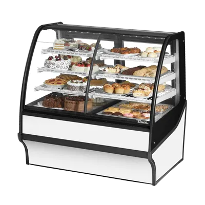 Optimize your kitchen efficiency with the True Manufacturing TDM-DZ-48-GE/GE-W-W Display Case. This dual-zone merchandiser is perfect for commercial restaurant use, offering both dry and refrigerated storage options. With a spacious 48-1/4" width, this display case provides ample room for showcasing your products. The curved glass front and glass sides create an attractive display, while the two rear sliding glass doors allow for easy access. The three tiered levels of adjustable white PVC coated wire shelves provide flexibility in organizing your items. LED interior lighting illuminates your products, making them even more enticing to customers. Made in the USA, this display case is built to last with a white powder coated exterior and interior. The use of R290 Hydrocarbon refrigerant ensures energy efficiency, while the 1/4 HP motor provides reliable performance. Upgrade your restaurant's merchandising capabilities with the True Manufacturing TDM-DZ-48-GE/GE-W-W Display Case.