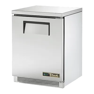Equip your commercial kitchen with the True Manufacturing TUC-24-HC Undercounter Refrigerator. This stainless steel refrigerator is designed to meet the demands of a busy restaurant environment. With a temperature range of 33-38 F, it ensures that your ingredients stay fresh and at the optimal temperature. The clear coated aluminum interior with a stainless steel floor is not only durable but also easy to clean, making maintenance a breeze. The refrigerator features one stainless steel door and two shelves, providing ample storage space for your ingredients. The front breathing design allows for easy installation, while the four recessed castors make it easy to move the refrigerator around your kitchen. With its energy-efficient 1/6 HP compressor and R290 Hydrocarbon refrigerant, this refrigerator is not only environmentally friendly but also helps you save on energy costs. Made in the USA and ENERGY STAR certified, the True Manufacturing TUC-24-HC Undercounter Refrigerator is a reliable and efficient choice for any commercial restaurant.