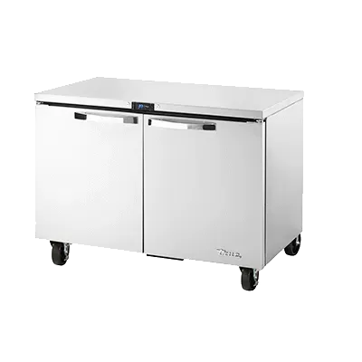 Boost your restaurant's performance with the True Manufacturing TUC-48-HC~SPEC3 Undercounter Reach-In Refrigerator. This top-of-the-line refrigerator is designed to meet the demanding needs of commercial kitchens. With its SPEC Package 3, it offers exceptional durability and functionality. The 16-gauge stainless steel top, sides, and back ensure long-lasting performance, while the stainless steel interior and heavy-duty stainless steel doors provide a sleek and professional look. The electronic temperature control with a digital display allows for precise temperature management, keeping your ingredients fresh and ready for use. The four shelves offer ample storage space, and the door lock provides added security. Equipped with 5" castors, this refrigerator is easy to move and clean. Made in the USA, this True Manufacturing refrigerator is not only reliable but also environmentally friendly, thanks to its R290 Hydrocarbon refrigerant. Upgrade your kitchen with the TUC-48-HC~SPEC3 and experience the difference in efficiency and performance.