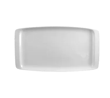 Transform your dining atmosphere easily with Vertex China's ARG-R25P-B Platter. This rectangular, rolled edge platter measures 13-3/4" x 7-1/2" and is part of the bright white, Universal Signature Collection. Crafted with precision and attention to detail, this platter is designed to enhance the presentation of your culinary creations. Its sleek and elegant design adds a touch of sophistication to any table setting, making it perfect for upscale restaurants and fine dining establishments. The ARG-R25P-B Platter is made from high-quality china, ensuring durability and longevity, even with frequent use in a busy commercial kitchen. Its versatile size and shape make it ideal for serving a variety of dishes, from appetizers and entrees to desserts. Elevate your restaurant's dining experience with the ARG-R25P-B Platter from Vertex China.