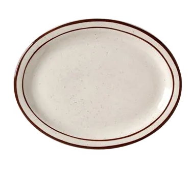 Transform your dining setting seamlessly with the Vertex China, CRV-14 Platter. This oval-shaped platter, measuring 13-1/4", is designed to elevate your restaurant's presentation. Made from vitrified china, it is both microwave and dishwasher safe, ensuring convenience and durability in a busy commercial kitchen. The brown speckled design adds a touch of rustic charm, while the double band detail enhances its elegance. With a narrow rim, this platter maximizes the space for your culinary creations, allowing you to showcase your dishes in style. The Caravan Collection from Vertex China offers better value without compromising on quality. Whether you're serving appetizers, main courses, or desserts, the Vertex China, CRV-14 Platter is the perfect choice for adding sophistication and functionality to your restaurant's tableware collection.
