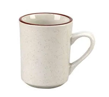 Enhance your restaurant presentation effortlessly with the Vertex China, CRV-17 Mug. This 8 oz. mug is designed to elevate your dining experience with its elegant and authentic brown speckled design. Made from vitrified china, this mug is not only microwave and dishwasher safe but also durable enough to withstand the demands of a busy commercial restaurant. The double band adds a touch of sophistication, making it perfect for upscale establishments. The Caravan Collection from Vertex China offers better value without compromising on quality. Whether you're serving hot beverages or showcasing your signature cocktails, the Vertex China, CRV-17 Mug is the perfect addition to your restaurant's tableware collection.