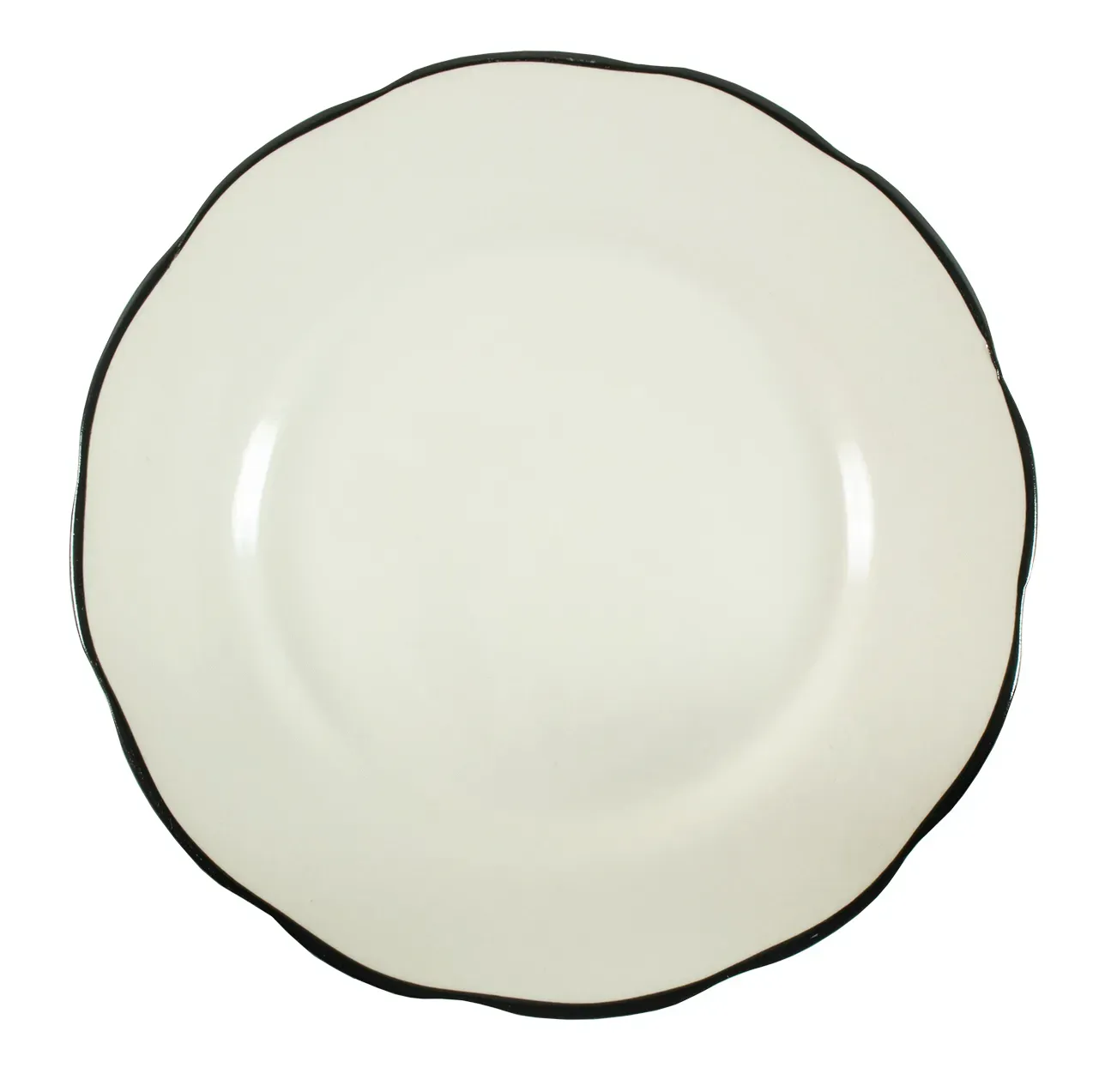 Simplify your table setup seamlessly with the Vertex China, CSCB-8 Plate. This round, 9" dia. plate from the California Scalloped Collection is designed to meet the demands of a busy commercial restaurant. Made from scratch-resistant vitrified china, it ensures durability and longevity, even with frequent use. The black line detail adds a touch of elegance to any table setting, making it perfect for upscale dining establishments.