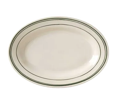 Enhance your restaurant's visual appeal with the Vertex China, DMG-39 Platter. This wide-rimmed platter is designed to elevate your culinary creations and impress your guests. Made from vitrified china, it is both microwave and dishwasher safe, ensuring convenience and durability in a busy restaurant setting. The rolled edge adds a touch of elegance, while the Del Mar Green Collection brings a fresh and modern aesthetic to your table. With a size of 8-1/8" x 5-5/8", this platter is perfect for serving appetizers, small plates, or desserts. Whether you're showcasing your signature dishes or presenting a stunning display of hors d'oeuvres, the Vertex China, DMG-39 Platter is the perfect choice for enhancing your restaurant's presentation and creating a memorable dining experience.