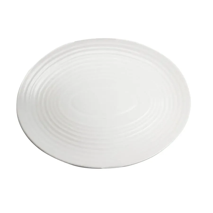 Simplify your table setup seamlessly with the Vertex China, E-13-C Platter. Designed specifically for commercial restaurant use, this platter is a must-have for any professional kitchen. With its oval shape and subtle embossing, it adds a touch of elegance to any presentation. The matte white finish gives it a modern and sophisticated look, while the polished foot ensures stability on any surface. Made from premium materials, this platter is durable and built to withstand the demands of a busy restaurant environment. Whether you're serving appetizers, main courses, or desserts, this platter is the perfect choice. Enhance your dining experience and impress your guests with the Vertex China, E-13-C Platter.