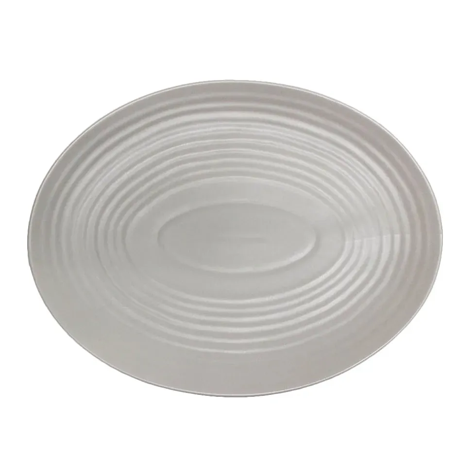 Curate a timeless dining ambiance with the Vertex China, E-13-S Platter. This elegant platter is designed to elevate your restaurant's presentation and impress your guests. With its sleek oval shape and subtle embossing, it adds a touch of sophistication to any table setting. The matte gray finish exudes a modern and contemporary vibe, perfect for upscale establishments. Crafted with premium quality materials, this platter is durable and built to withstand the demands of a busy commercial kitchen. Its polished foot ensures stability and prevents slipping, providing a safe serving experience. The Vertex China, E-13-S Platter is part of the Premium Organics Elements collection, offering a harmonious blend of style and functionality. Whether you're serving appetizers, main courses, or desserts, this platter is a versatile and essential addition to your restaurant's dinnerware collection. Elevate your dining experience with this exquisite platter.