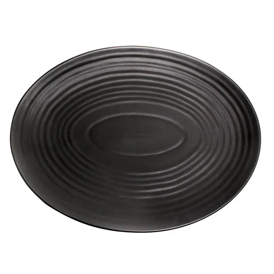 Simplify your tabletop presentation with the Vertex China, E-14-O Platter. This premium platter is designed for commercial restaurant use, offering both style and functionality. With its sleek oval shape and subtle embossing, this platter adds a touch of elegance to any table setting. The matte black finish gives it a modern and sophisticated look, while the polished foot ensures stability and durability. Made by Vertex China, a trusted name in the industry, this platter is crafted with high-quality materials to withstand the demands of a busy restaurant environment. Whether you're serving appetizers, main courses, or desserts, this platter is the perfect choice. Elevate your restaurant's presentation with the Vertex China, E-14-O Platter.