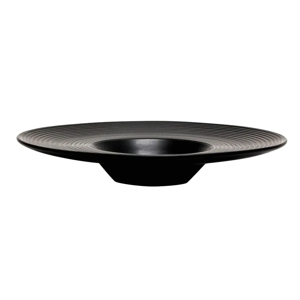 Elevate the dining experience with Vertex China's E-G23-O Gourmet Bowl. This round, 11-7/8" dia. bowl is designed to add a touch of elegance to any commercial restaurant setting. With its subtle embossing and matte black finish, this bowl exudes sophistication and style. The polished foot adds a refined touch, making it perfect for upscale establishments. Made with premium materials, this bowl is durable and built to withstand the demands of a busy kitchen. Whether you're serving soups, salads, or pasta dishes, this versatile bowl is sure to impress your guests. With its unknown capacity, it offers ample space for generous portions.
