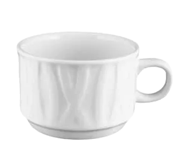 Upgrade your dining setting with the Vertex China GV-1 Cups. These premium porcelain cups are designed for commercial restaurant use, making them the perfect addition to your establishment. With a capacity of 7 oz., these cups are ideal for serving hot beverages such as coffee, tea, or hot chocolate. The stackable design allows for easy storage and organization, saving valuable space in your kitchen. The embossed pattern adds a touch of elegance to your table setting, while the polished foot ensures stability and prevents slipping. Made from bright white porcelain, these cups are not only visually appealing but also durable and resistant to chipping. The Grass Valley design fits perfectly with the GV-2 saucers, creating a cohesive and stylish look. Elevate your dining experience with the Vertex China GV-1 Cups.