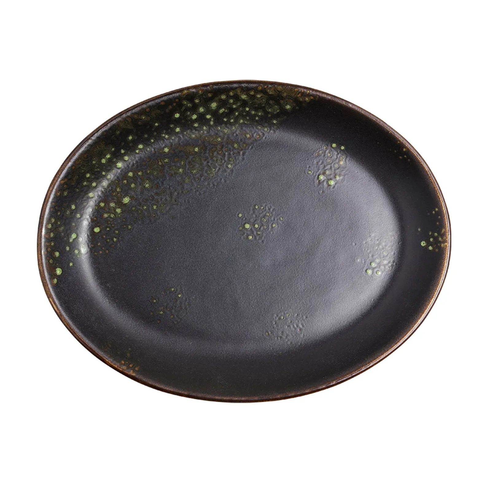 Upgrade your dining ambiance easily with the Vertex China, LMJ-13 Platter. This stunning platter from the London Moonstone Collection is designed to elevate your restaurant's presentation. Hand-painted with a matte black and jade reactive glaze, it exudes elegance and sophistication. The fully glazed foot and scratch-resistant, aluminum oxide reinforced body ensure durability and longevity, even in a busy commercial restaurant setting. With its oval shape and coupe design, this platter offers a unique and contemporary look that will impress your guests. Whether you're serving appetizers, main courses, or desserts, this platter provides the perfect canvas for showcasing your culinary creations. Trust Vertex China, a reputable vendor known for their premium quality and attention to detail, to enhance your restaurant's dining experience.