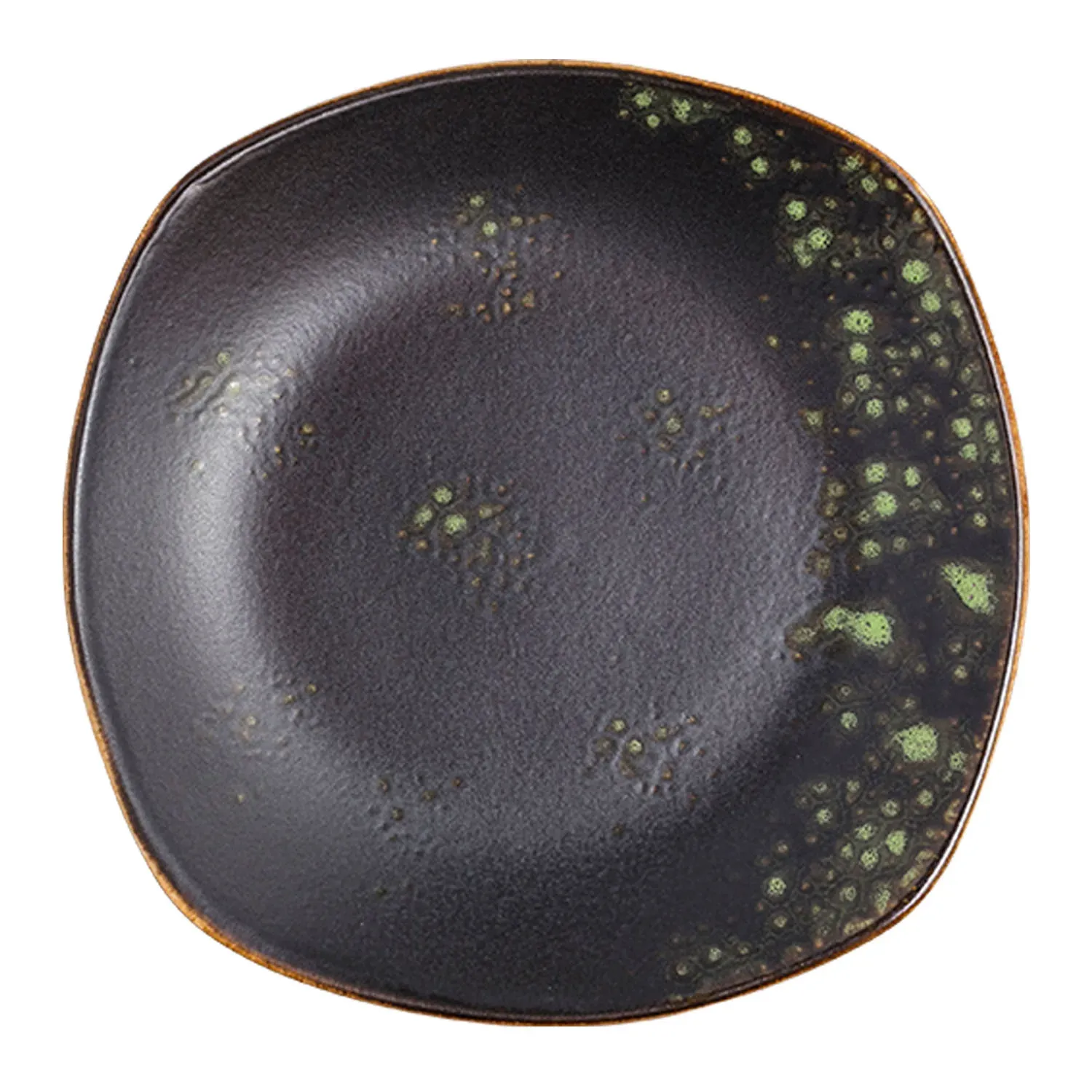 Enhance your restaurant presentation effortlessly with the Vertex China, LMJ-S22 Plate. This square plate, measuring 8-1/2" x 8-1/2", is designed to elevate your culinary creations and impress your guests. Hand-painted with a stunning matte black/jade reactive glaze, this plate from the Premium London Moonstone Collection exudes elegance and sophistication. The fully glazed foot ensures stability and durability, while the scratch-resistant, aluminum oxide reinforced body guarantees long-lasting use in a busy restaurant environment. Made from high-quality porcelain, this plate is not only visually appealing but also practical and functional. Its unique design and premium craftsmanship make it perfect for showcasing appetizers, entrees, and desserts.