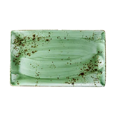 Upgrade your dining ambiance easily with the Vertex China, LTJ-R20 Platter. This rectangular platter, measuring 13" x 7-1/2", is hand-painted and features a stunning terra jade design from the Premium London Terra Collection. The fully glazed foot and aluminum oxide reinforced body ensure durability and longevity, making it perfect for commercial restaurant use. Its elegant design and high-quality construction make it ideal for showcasing appetizers, entrees, or desserts, adding a touch of sophistication to your presentation.