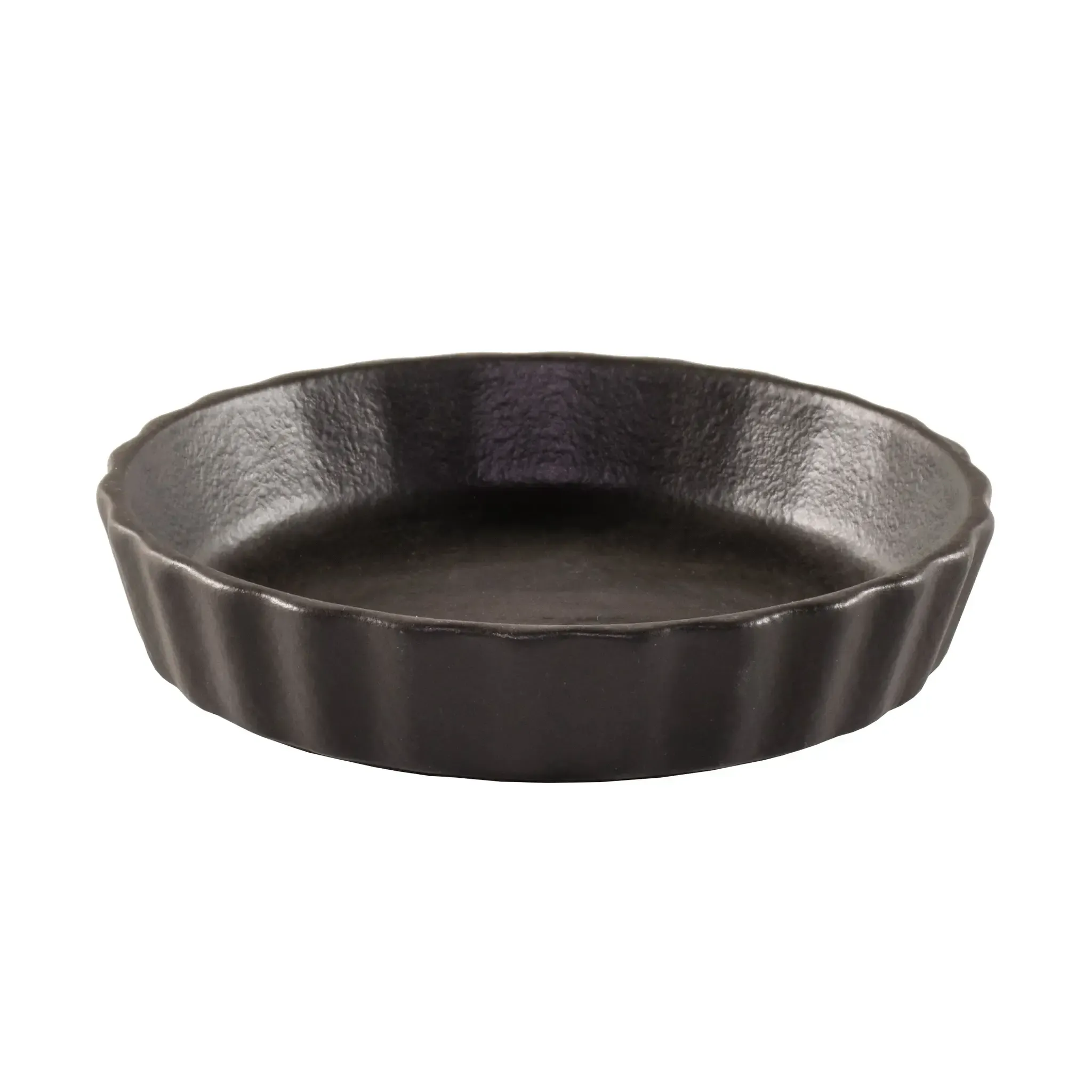 Transform your dining setting seamlessly with the Vertex China OB-Q5 Souffle Bowl/Dish. This premium porcelain dish is designed to elevate your restaurant's presentation and impress your guests. With a 6 oz. capacity and a 5" diameter, it is perfect for serving individual portions of quiche or other delectable dishes. The round shape and fluted sides add a touch of elegance to any table setting. Made from scratch-resistant porcelain, this dish is built to withstand the rigors of a busy commercial kitchen. It is microwave, oven, freezer, and dishwasher safe, providing convenience and versatility. The matte black finish adds a modern and sophisticated touch to your tableware collection. Whether you're serving at a fine dining establishment or a casual eatery, the Vertex China OB-Q5 Souffle Bowl/Dish is a must-have for any commercial restaurant looking to impress their customers with style and quality.