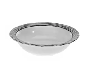 Elevate your dining experience effortlessly with Vertex China, RB-11-LGY, China, Bowl. This fruit bowl from the Rubicon Collection is designed to enhance the presentation of your culinary creations. With a capacity of 5-3/4 oz., it is perfect for serving individual portions of fresh fruits or appetizers. The round, coupe shape and polished foot add a touch of elegance to any table setting. Made with a magnesium reinforced body, this bowl is durable and long-lasting, making it ideal for the demands of a commercial restaurant. The super white color adds a clean and sophisticated look to your table, while the linear gray design adds a modern twist. This bowl is part of the Premium line from Vertex China, ensuring exceptional quality and style. Elevate your restaurant's dining experience with this versatile and stylish fruit bowl.